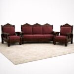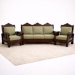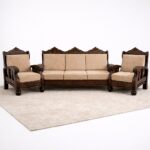 This set includes a spacious three-seater sofa and two single-seater armchairs, offering a balanced and practical layout for family living rooms or formal seating areas. Designed without a center table, the focus remains on generous seating capacity and detailed wood craftsmanship.