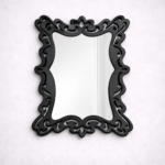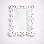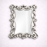 The uniquely curved rectangular shape adds softness and dimension, making it an ideal statement piece for living rooms, bedrooms, dressing areas, or hallways. The ornamental scroll detailing along the borders provides visual texture without overpowering the clean mirror surface. The smooth inner edge balances the intricate outer design, ensuring harmony and symmetry.