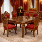 Designed for formal dining rooms and statement interiors, this handcrafted ensemble represents heritage craftsmanship, stability, and refined sophistication.