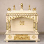 Be the first to review “Ivory Gold Hand-Painted Teakwood Mandir with Ornamental Arch and Drawer Storage”
