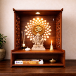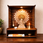 Its compact footprint makes it ideal for apartments, living rooms, and dedicated prayer corners. The balanced proportions and soft illumination create a calming devotional atmosphere. Designed for contemporary homes seeking functional and elegant pooja furniture.