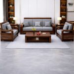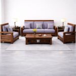 The Premium Contemporary Teakwood Sofa Set with Center Table is crafted from solid teakwood and designed with clean modern lines. Available in multiple upholstery color options, it offers durable construction with refined contemporary elegance.