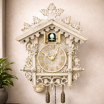 Inspired by classic European cuckoo clock designs, this teakwood wall clock is a perfect blend of tradition and artistic craftsmanship. The entire structure is made from solid teakwood, known for its strength, longevity, and rich natural grain patterns.