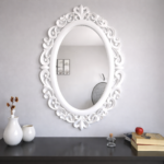 The elegant oval silhouette creates a balanced and sophisticated presence, making it an ideal focal point for living rooms, bedrooms, entryways, or dressing areas. The ornamental crest at the top and bottom adds architectural richness and depth to the overall design. Smooth flowing curves combined with detailed carving create a harmonious blend of luxury and artistry.